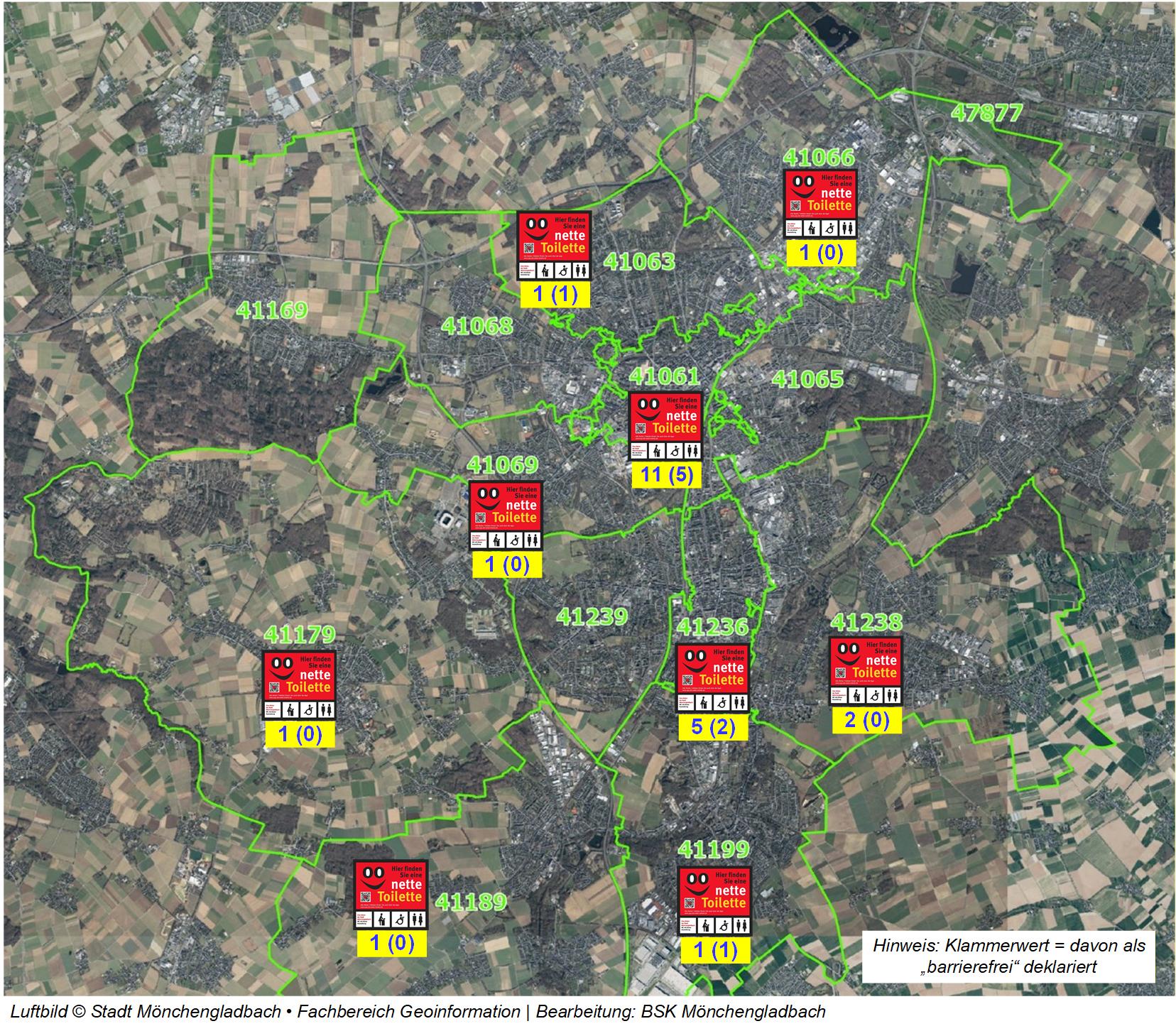 Die Kabinen für die umweltfreundlichen öffentlichen WC-Anlagen hat die Stadt Mönchengladbach im September 2024 am Bismarckplatz in Gladbach sowie an der Stresemannstraße in Rheydt (vor dem ehemaligen Eingang Karstadt) aufgestellt.