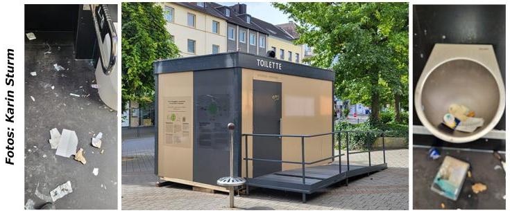 Das trifft im Übrigen auch für die neuen Öko-Toiletten, die zwar öffentlich zugänglich sein sollen, aber faktisch nicht nutzbar sind, weil ihr Zustand nicht einmal die hygienischen Grundvoraussetzungen erfüllen.“